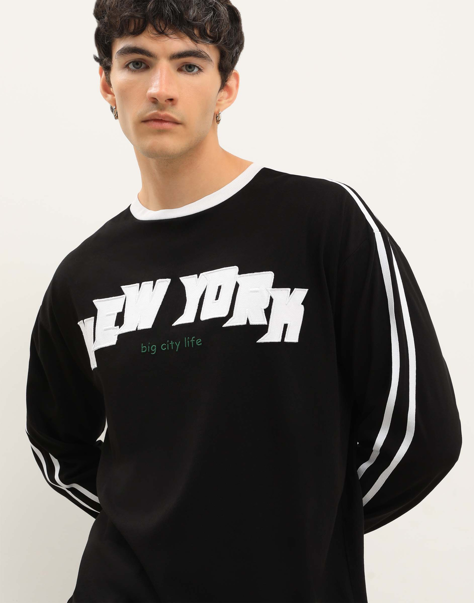 Чёрный лонгслив с контрастными полосами и вышивкой BKT015076-1 купить
