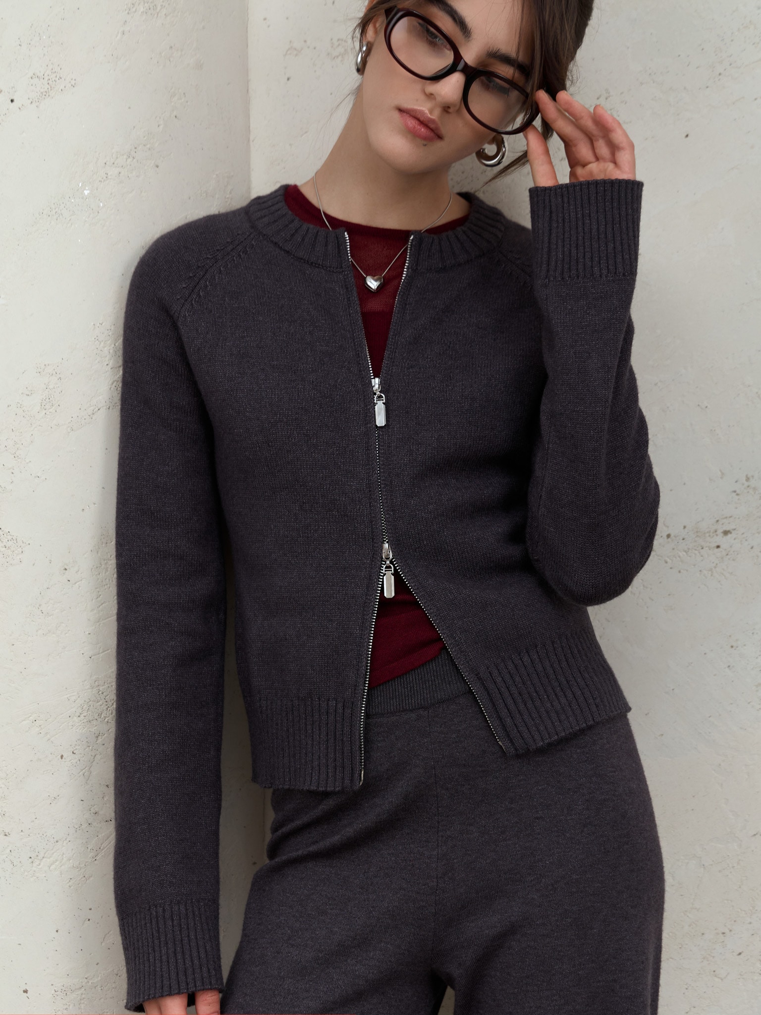 Трикотажный кардиган с деталями в рубчик и металлической молнией