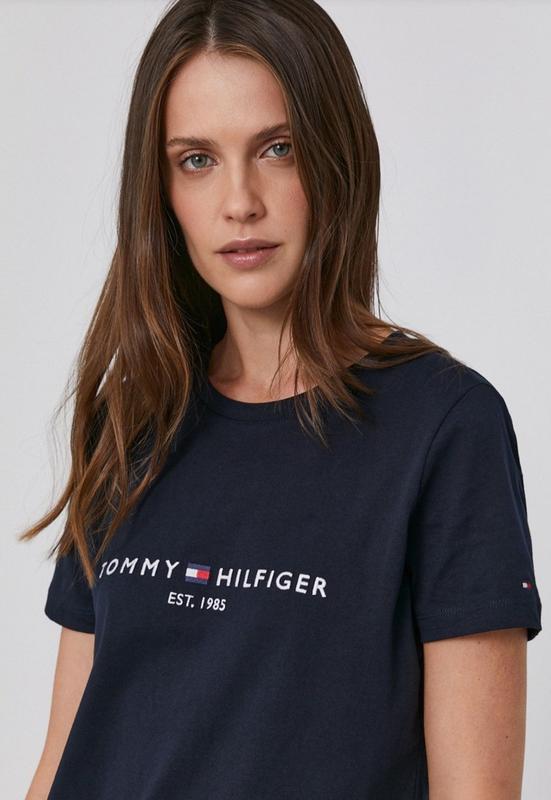 Хлопковая футболка с логотипом на груди tommy hilfiger с вышитым лого