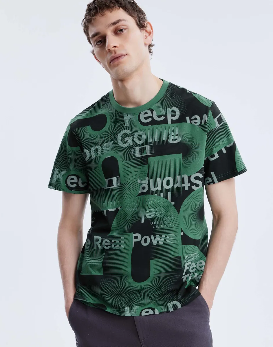 Зеленый Мужчины Футболка стандартного кроя с круглым вырезом и принтом