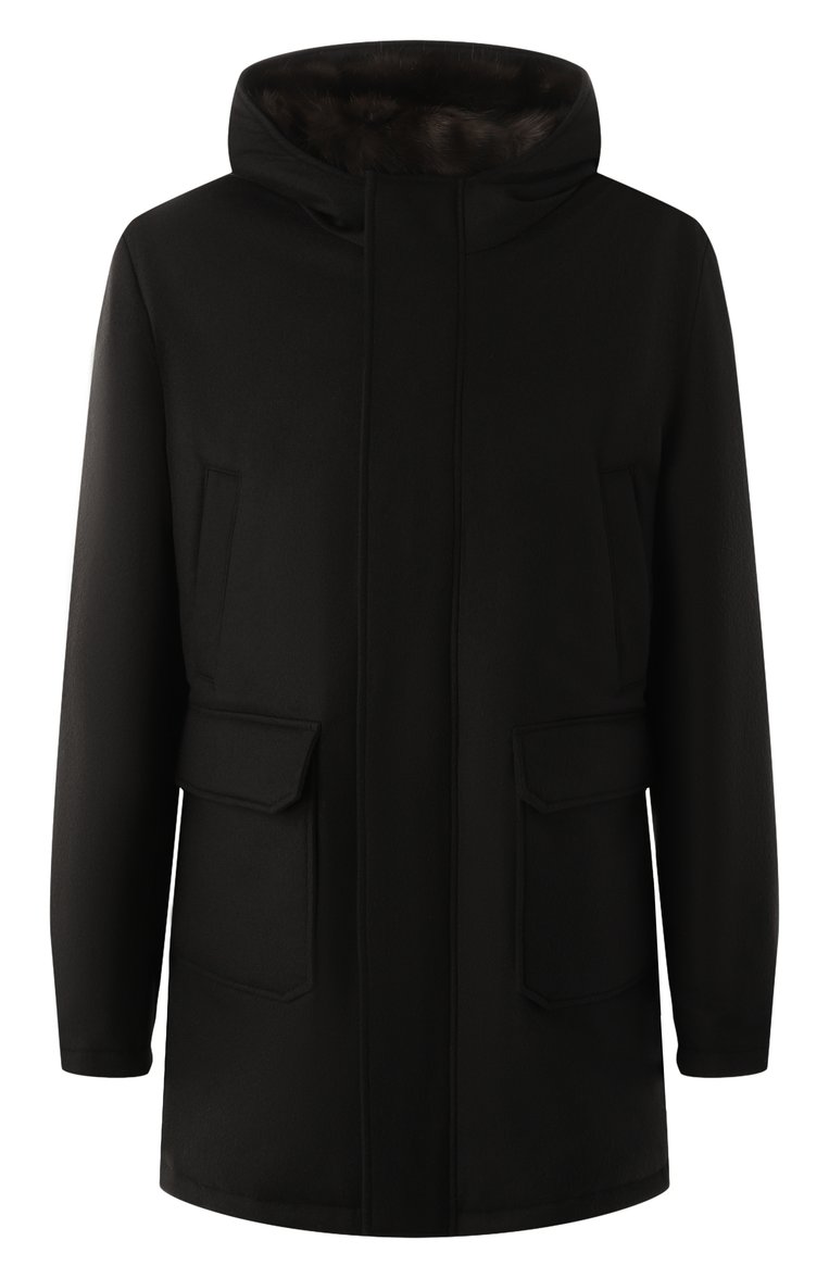 Мужская черная парка с подкладкой из меха соболя AMELI купить в