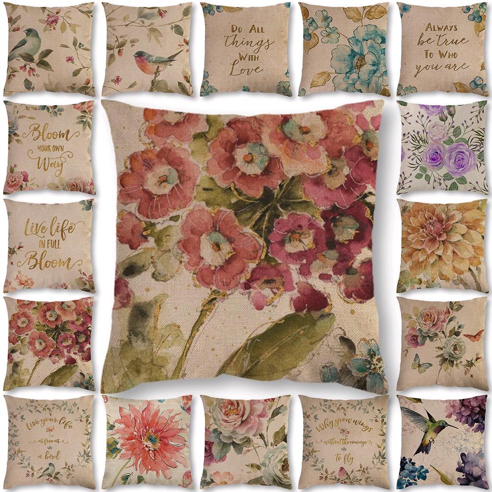 18-дюймовый чехол для подушки с птицами и цветами, наволочка из хлопка