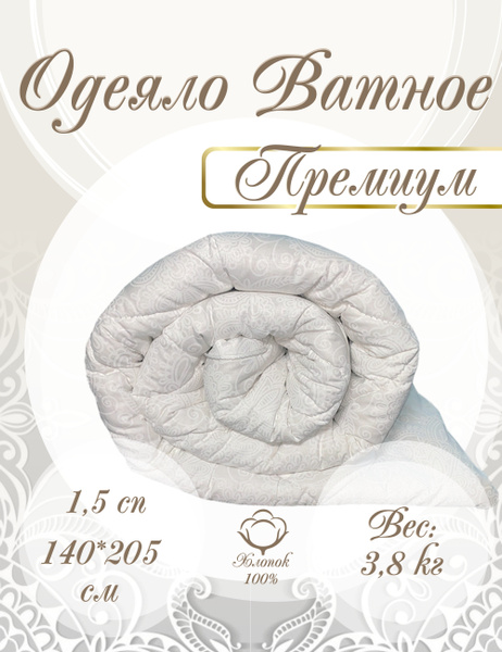 Одеяло ДОМ ТЕКСТИЛЯ ватное ОВ, 140x205, Зимнее, Всесезонное, с