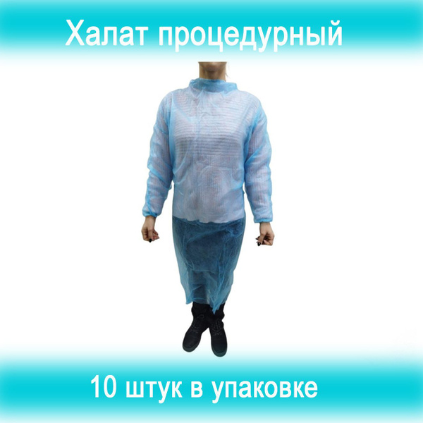 KLEVER Халат процедурный нестерильный, на завязке, рукава на резинке