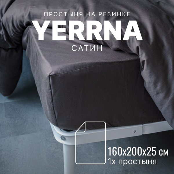 Простыня YERRNA резинка сатин, 160x200, темно-серый купить по низкой
