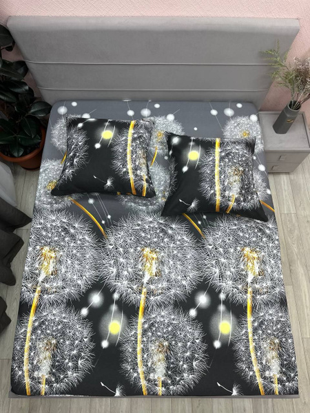 Простыня Простыни на резинке бязь 90, 90x200, белый, черный купить c