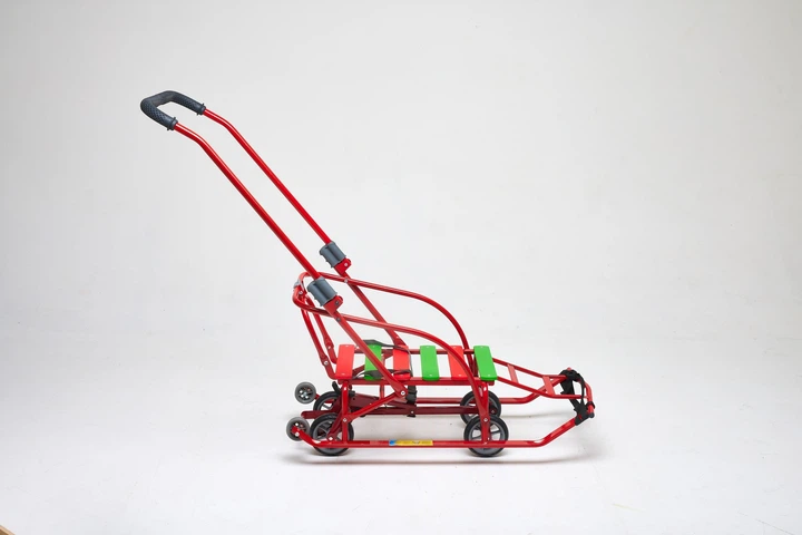 Санки з колесами Мрія з ручкою, що складається, червоний, рейки червоно