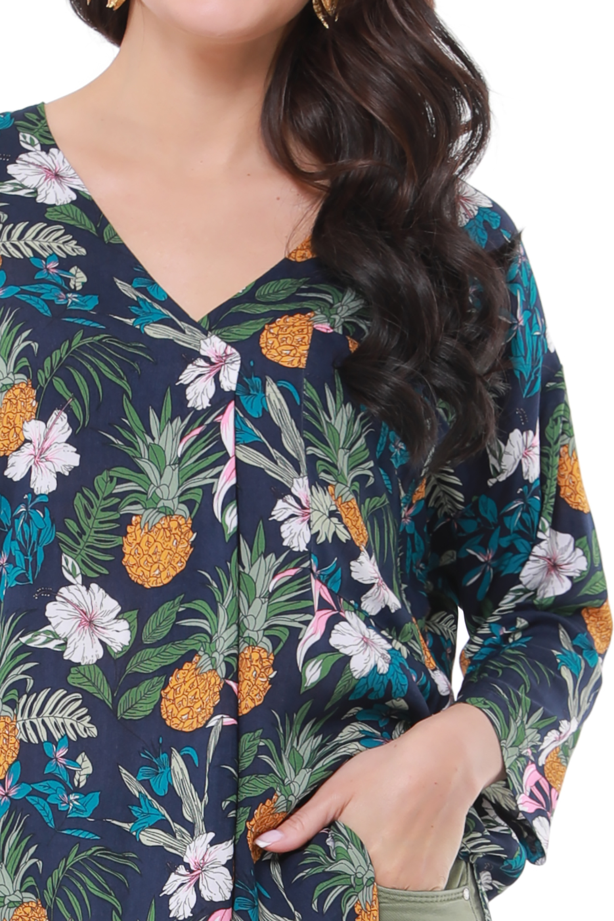 Купить Блузка трикотажная темно-синяя с рукавом летучая мышь по цене: 1