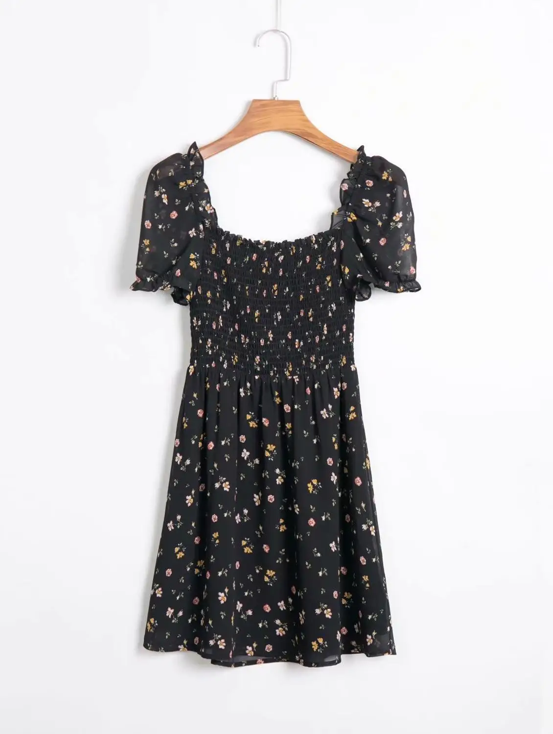 Винтажное мини-платье с квадратным вырезом, женское короткое платье с